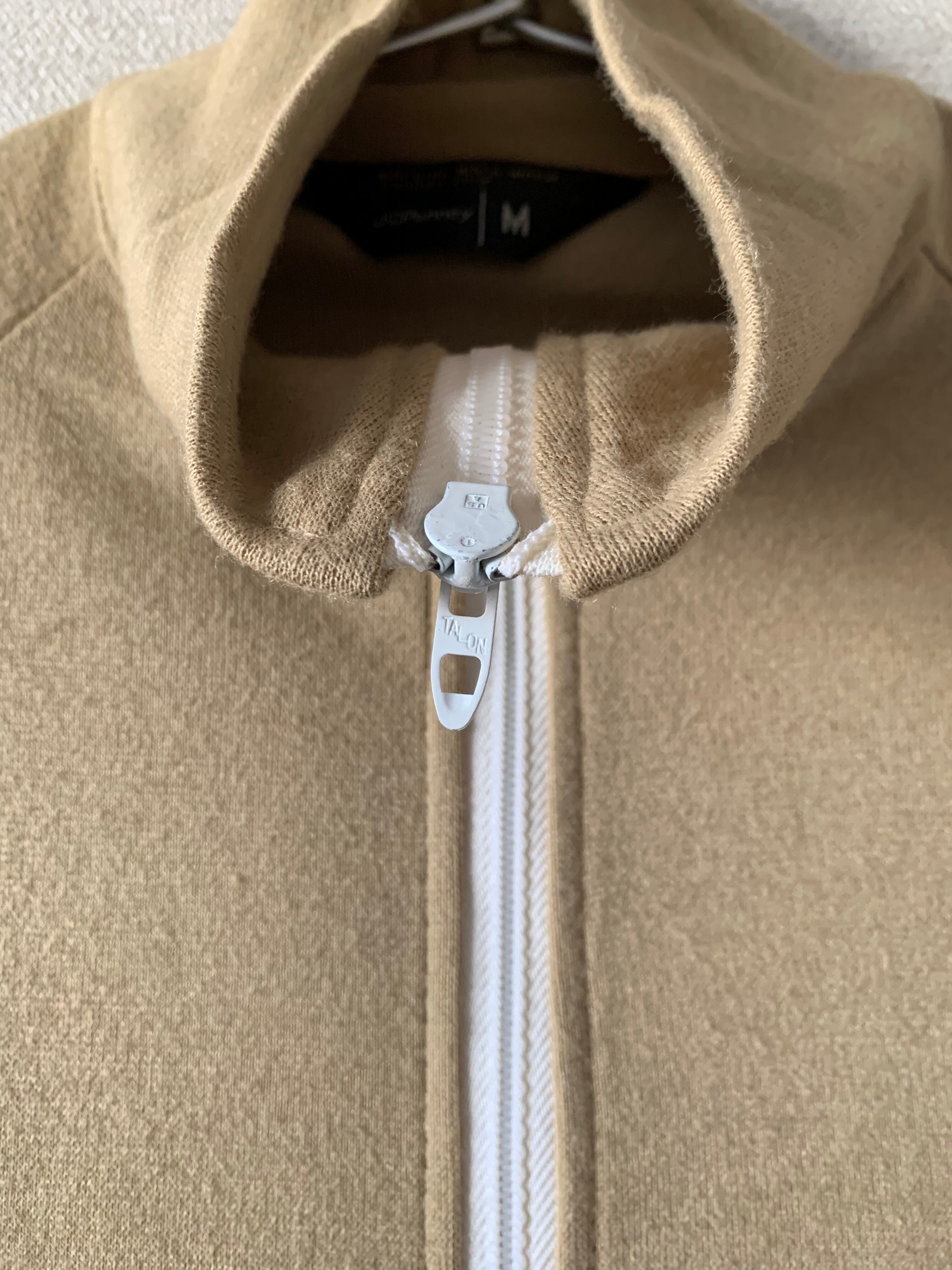 ニット素材のジップアップで、配色が渋めなのもいいです。