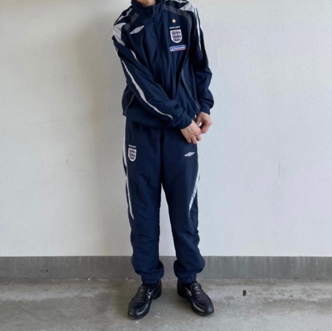 old UMBRO × ENGLAND track suits jersey set up jacket pants ジャージー トラックトップ ジャケット パンツ セットアップ ネイビー スポーツ フットボール サッカー 00's 2000年代 デサント ヴィンテージ 古着 vintage used メンズ古着