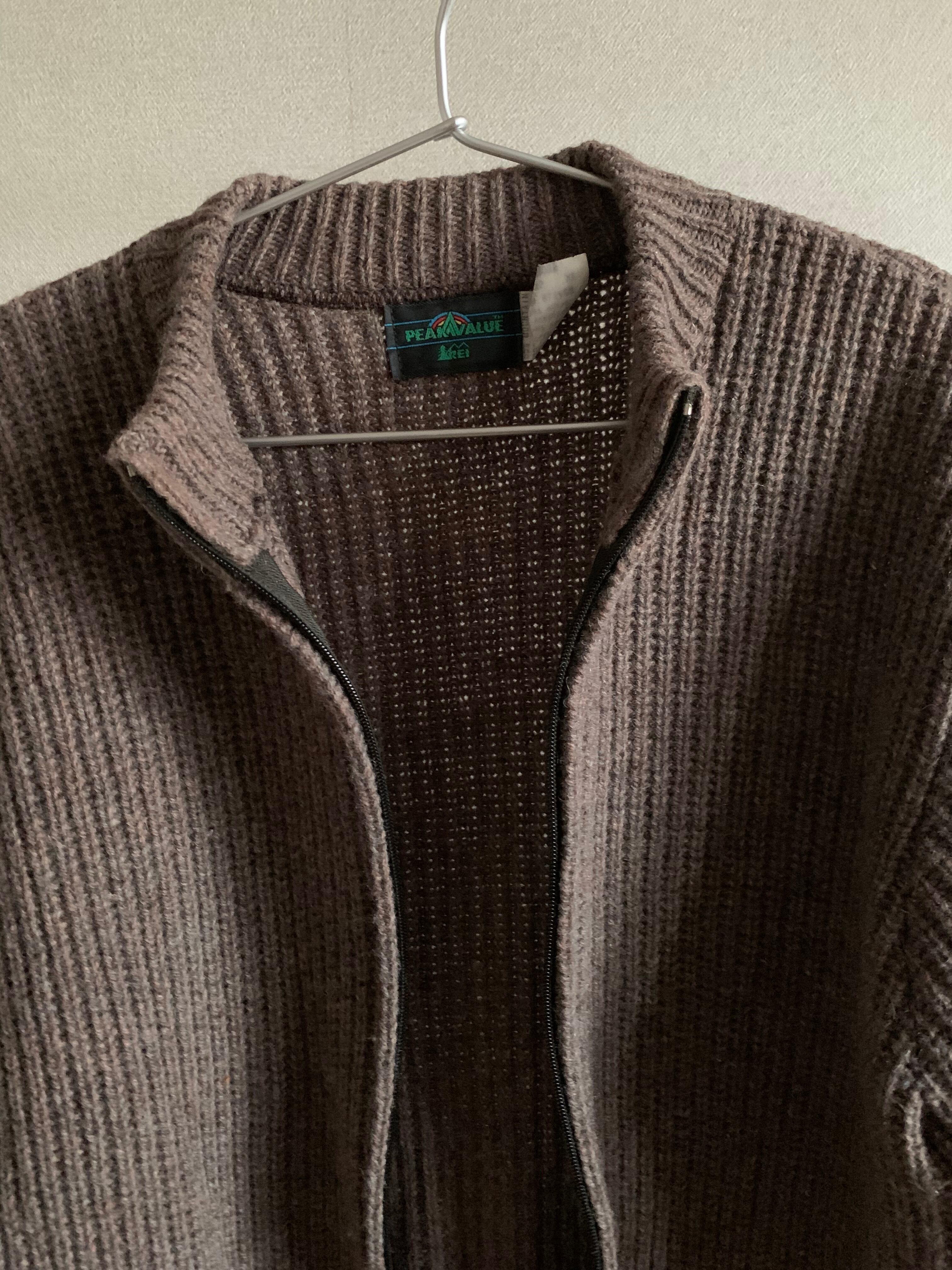 80s REI drivers knit zip up sweater 1980年代 アールイーアイ レイ ドライバーズ ニット ジップアップ セーター ブラウン ヴィンテージ 古着 オールド vintage used old メンズ古着 アメリカ古着