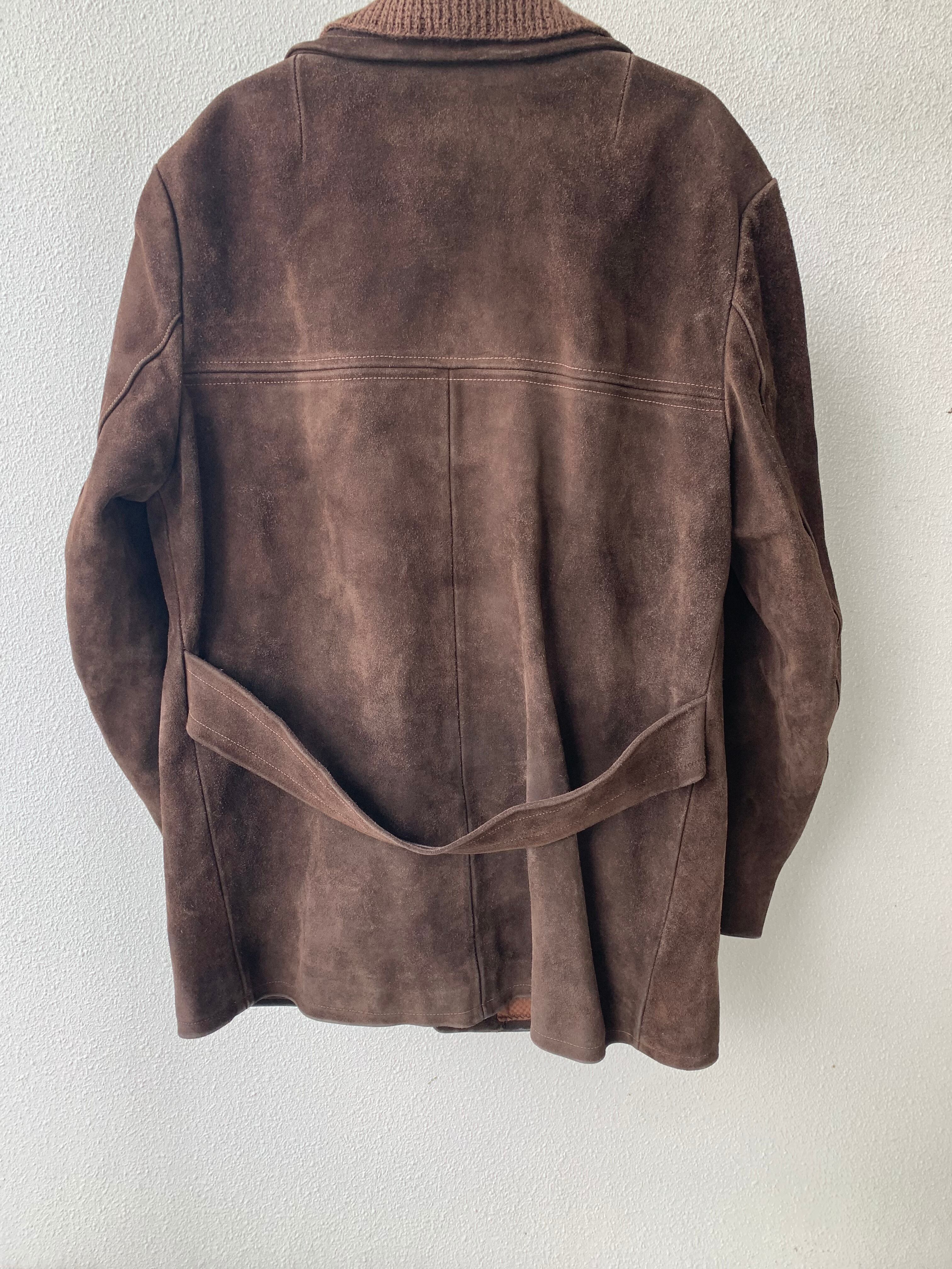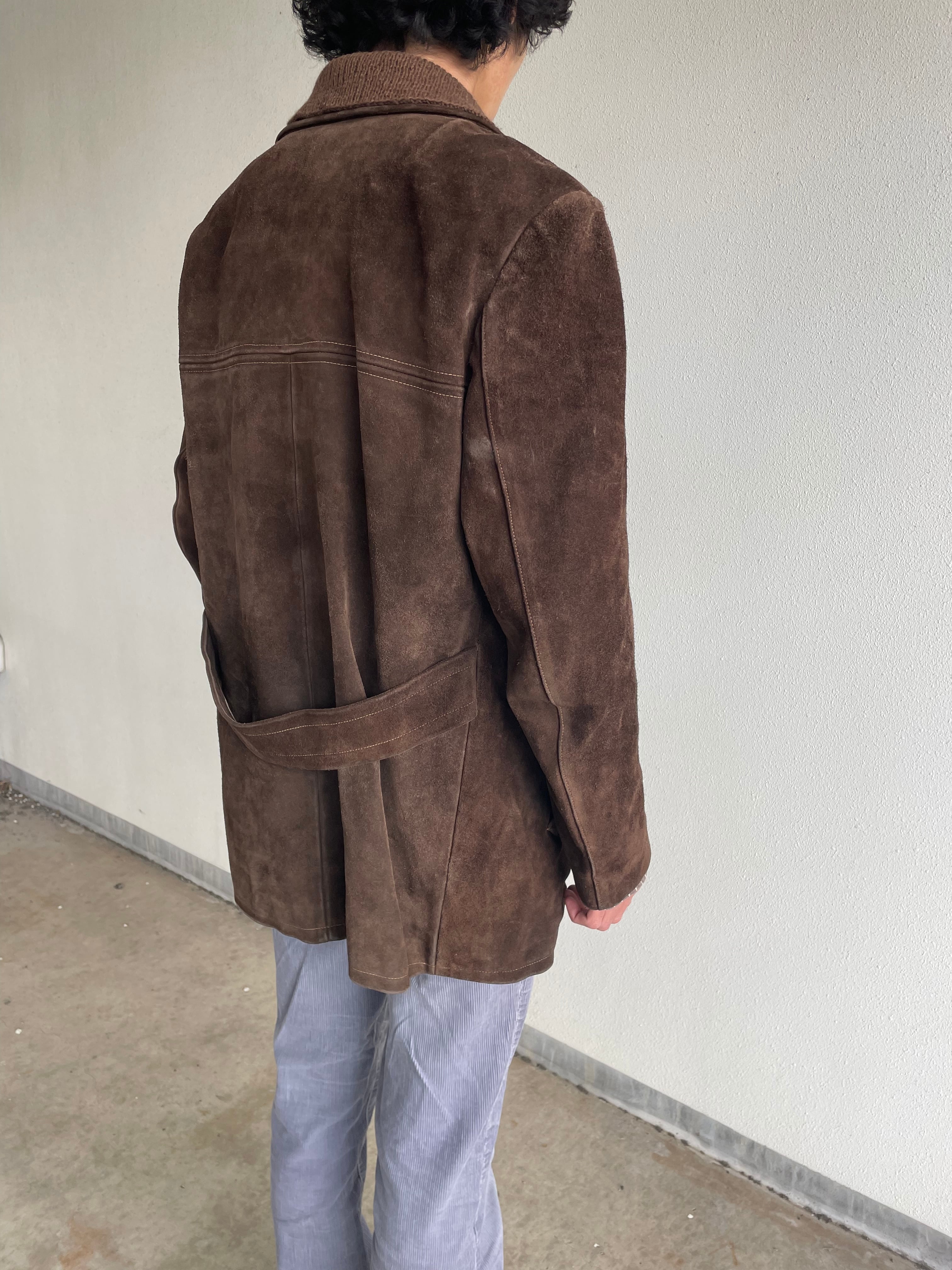 60s-70s EURO suede tailored jacket with back belt brown leather knit 1960年代 70年代 ユーロ スエード テーラードジャケット バックベルト ニット ブラウン レザー ヴィンテージ 古着 オールド euro vintage used old ユーロ古着 メンズ古着 | MOCOSTORE