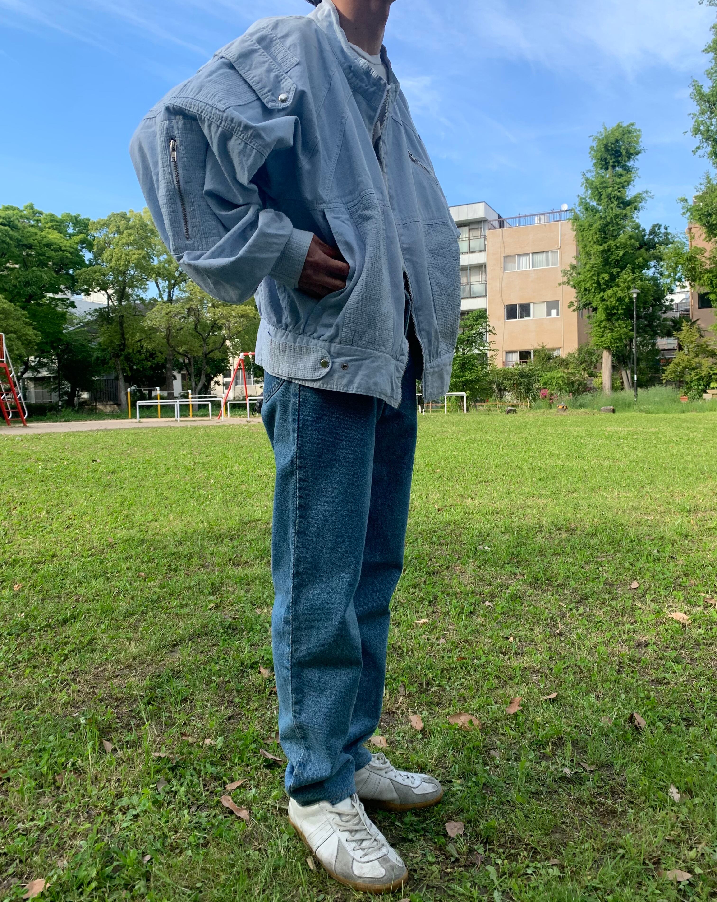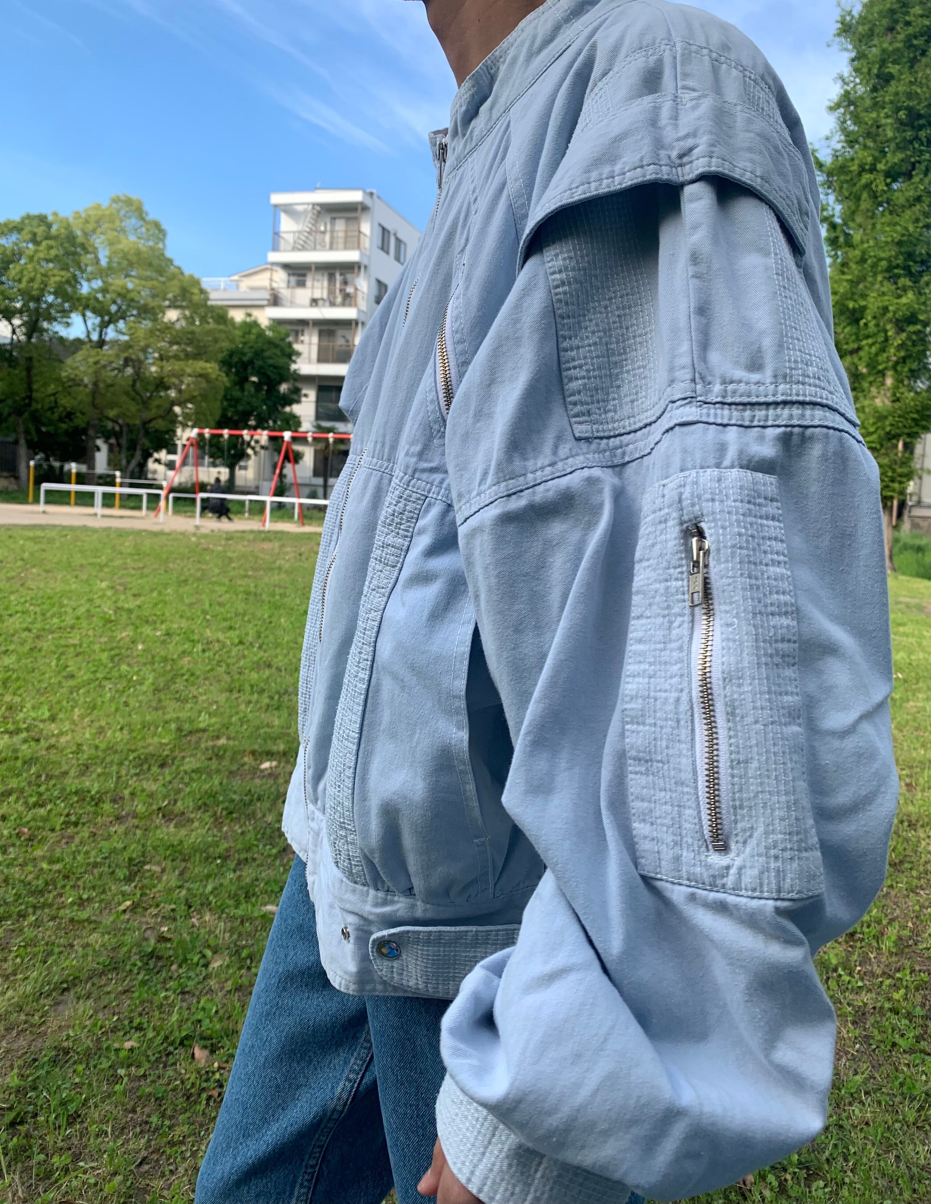 -90s EURO cotton designed blouson light blue germany 80's 90's コットン ブルゾン ライトブルー 1980年代 90年代 ヴィンテージ 古着 オールド euro vintage used old ユーロ古着 メンズ古着